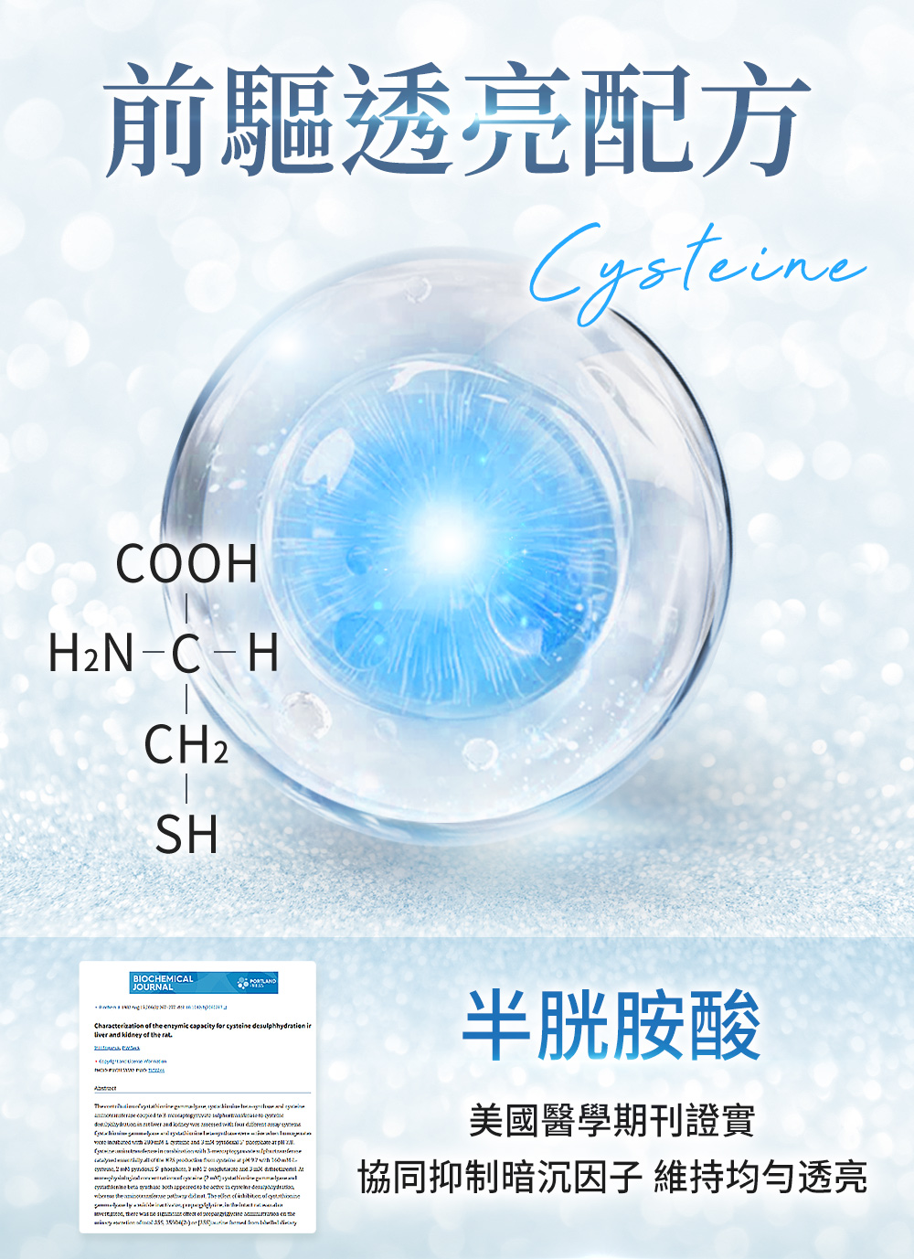 ★半胱胺酸→合成穀胱甘肽,喚醒淨透光